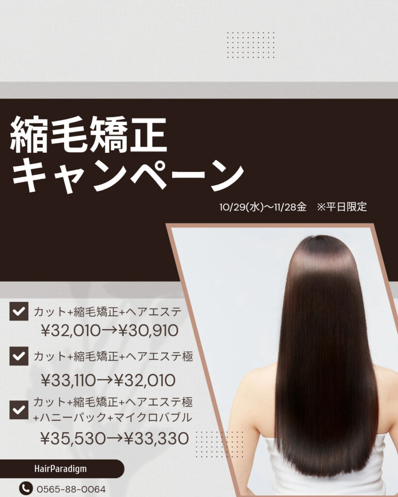 11月営業スケジュール&縮毛矯正キャンペーン中